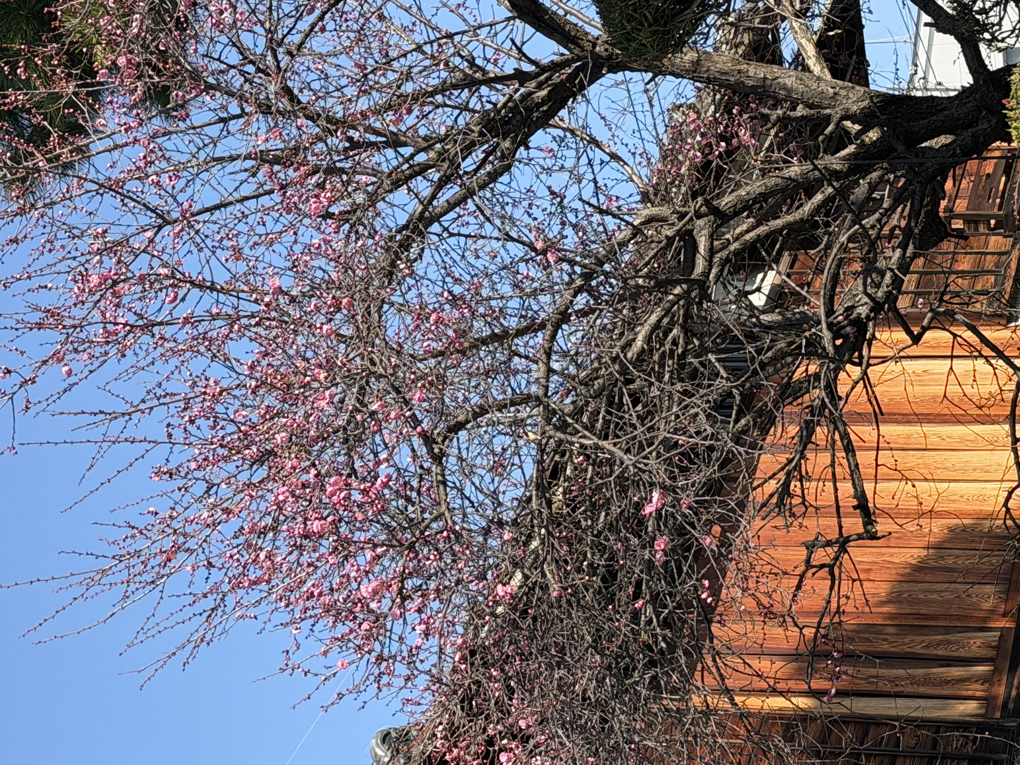 会場近くの家の庭で紅梅を見ました
